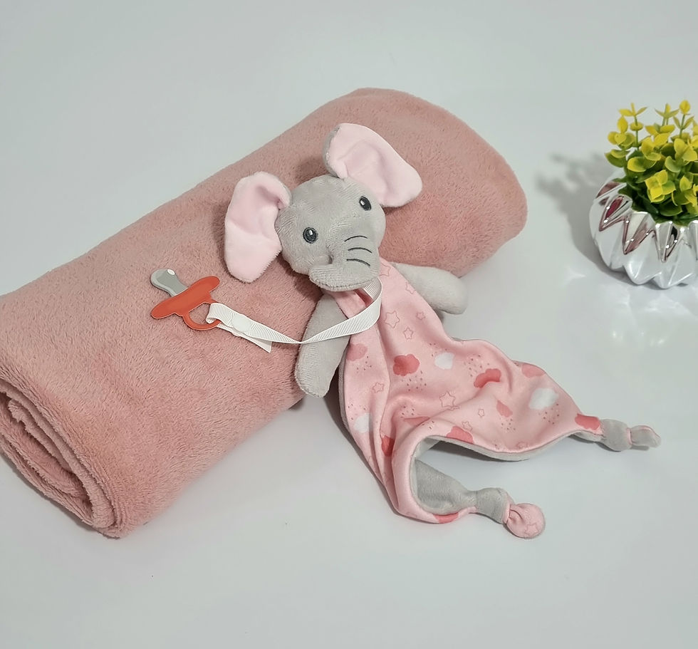KIT URSO PELÚCIA + cobertor rosa nuvem